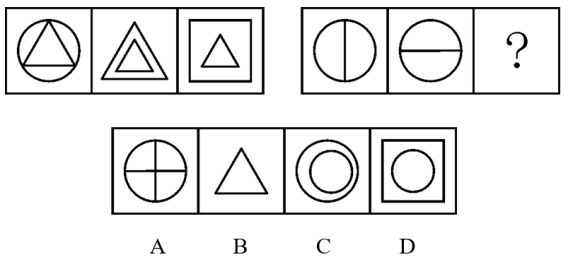 3、从所给四个选项中,选择最合适的一个填入问号处,使之呈现一定规律性: