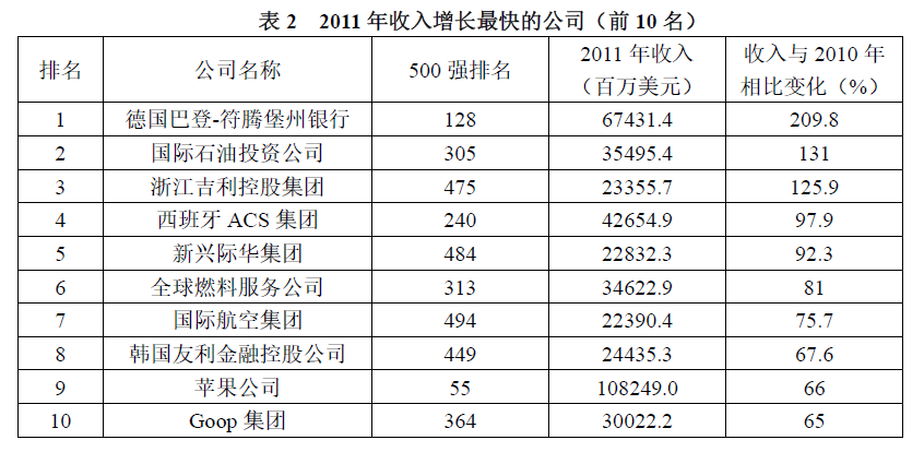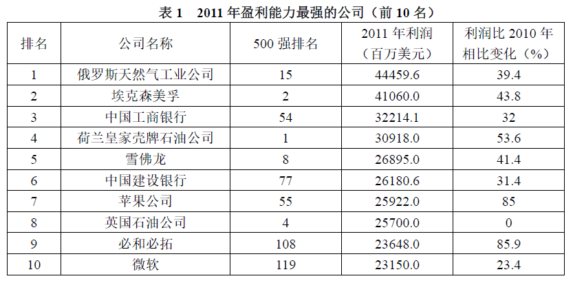 1、2011年利润增长最快的公司(前10名)中,利润比上一年增加最多的公司的利润增加了( )亿美元。