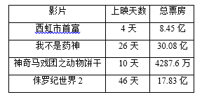 3、表格中的影片上映以来平均日票房最高的是:
