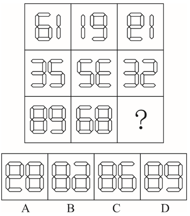 2、从所给的四个选项中,选择最合适的一个填入问号处,使之呈现一定的规律性: