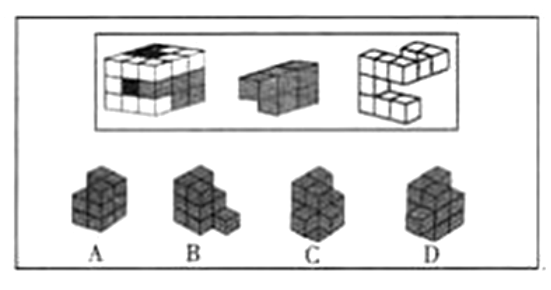 选择能与中间和右侧立体图拼接后,构成左侧完整立方体的选项。