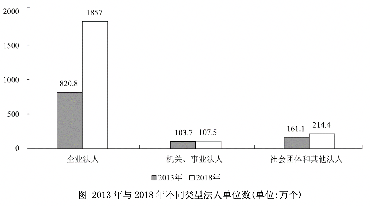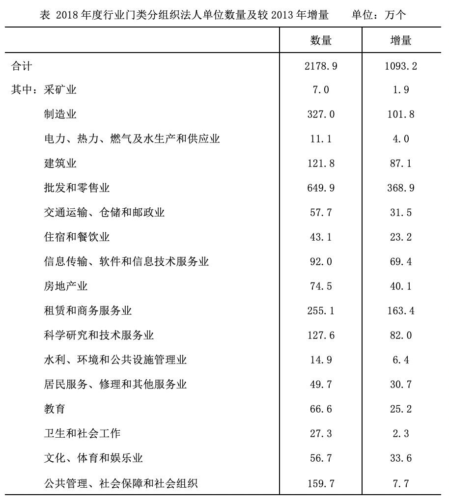 1、2013—2018年间,企业法人单位数量年均增量约是社会团体和其他法人数量年均增量的 倍。