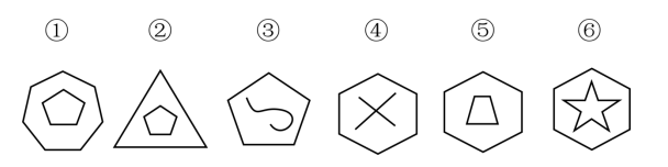 图形均为内外结构,①②⑤图形中,外框线条数和内部图形线条数的差为2,③④⑥图形中,外框线条数和内部图形线条数的差为4。