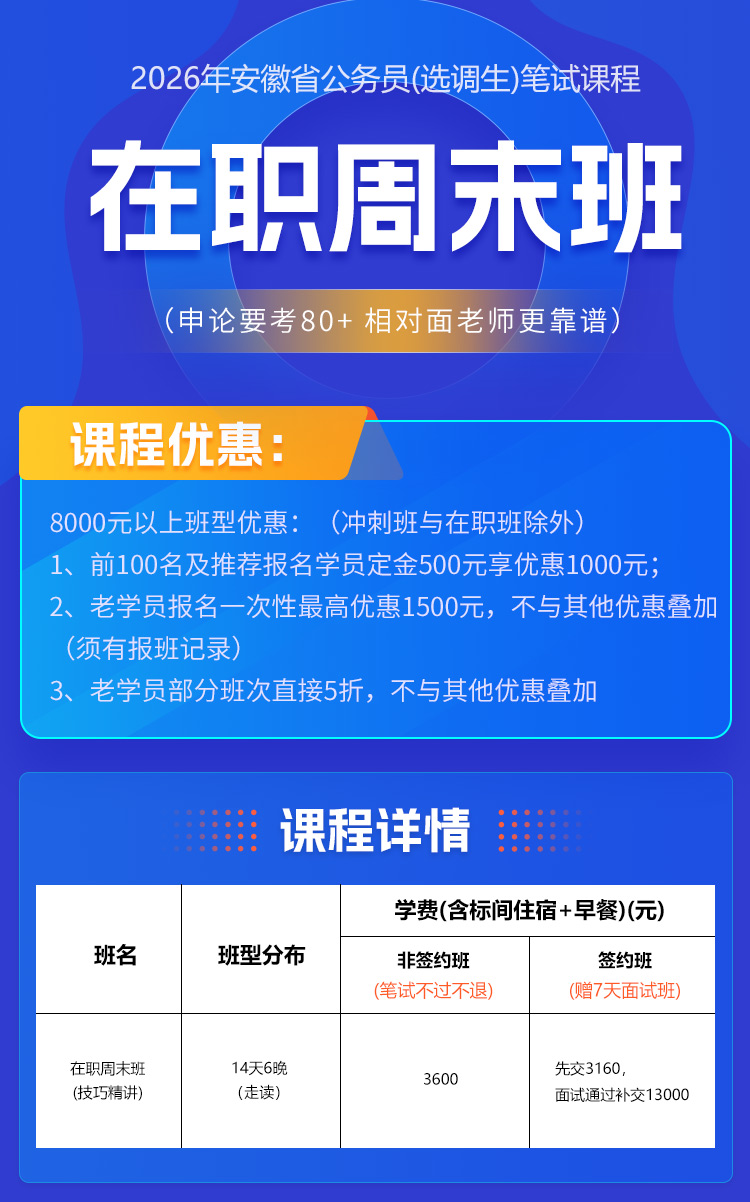 2026年安徽公务员/选调生笔试课程:在职周末班