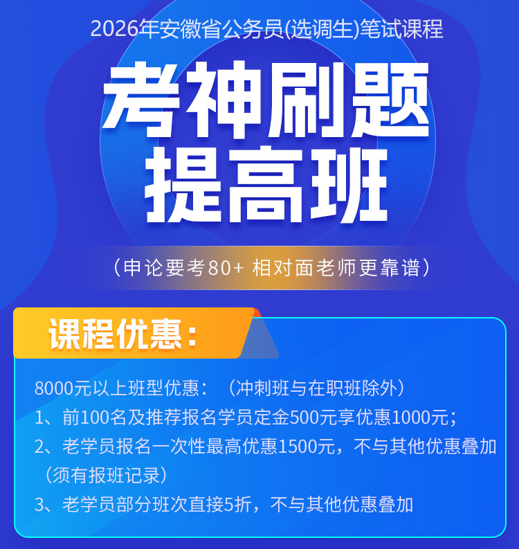 2026年安徽公务员/选调生笔试课程:考神刷题提高班