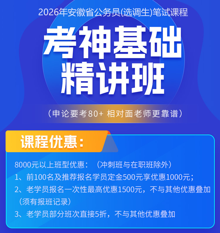 2026年安徽公务员/选调生笔试课程:考神基础精讲班