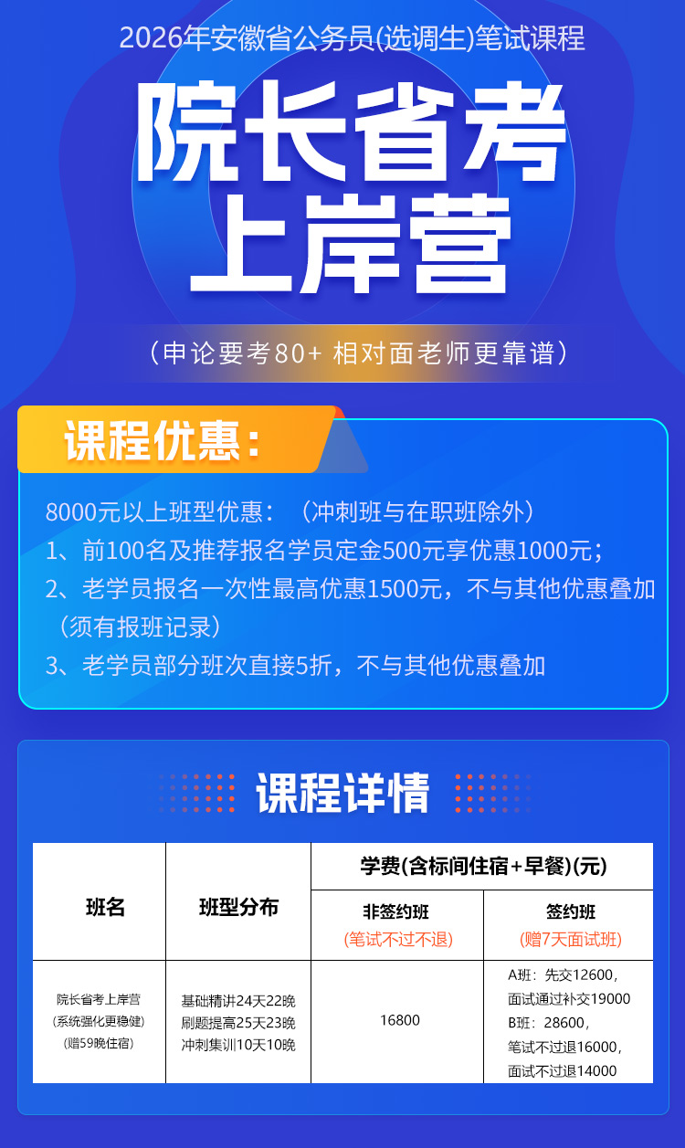 2026年安徽公务员/选调生笔试课程:院长省考上岸营