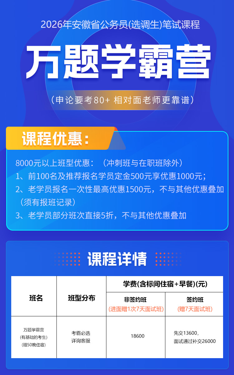 2026年安徽公务员/选调生笔试课程:万题学霸营