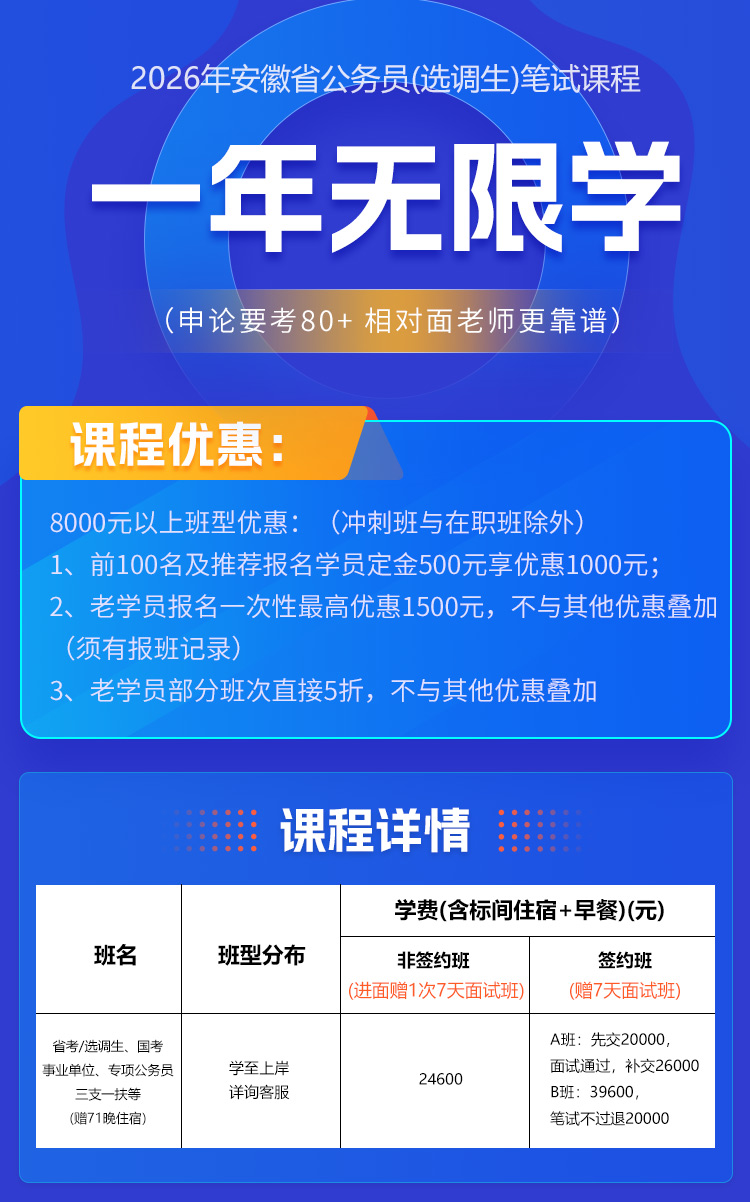 2026年安徽公务员/选调生笔试课程:一年无限学