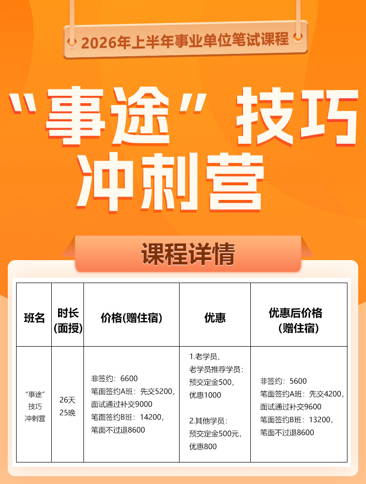2026年事业单位笔试课程:“事途”技巧冲刺营