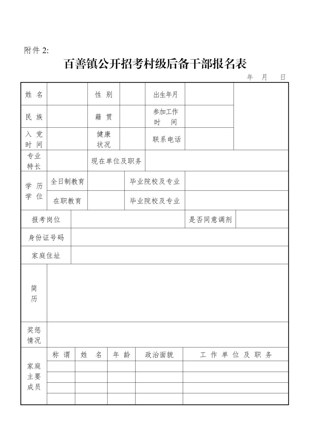 (3)濉溪县百善镇公开招考村级后备干部报名表
