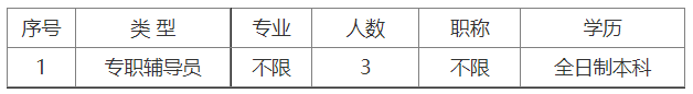 专职辅导员:全日制本科及以上学历,要求中共党员。有心理学、教育学、思政类相关专业优先;有心理咨询师、就业指导师证书的优先。
