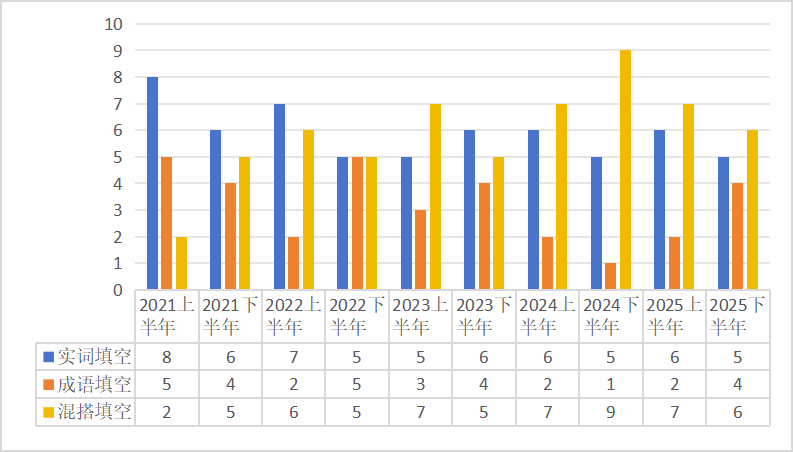 🔸通过对联考A类近五年的言语考察内容来看,逻辑填空题占到言语考试题量的60%,需要高度重视。其中,实词填空与混搭填空近三年来考查力度相对较高,大家应加以重视和练习。