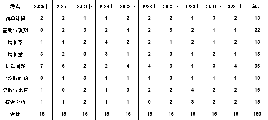 🔸2021-2025年上半年数资总题量为20题,其中数量关系5题、资料分析15题。(近几年都没有考查数字推理)